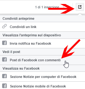 Se clicchiamo su Pubblica, il post verrà pubblicato istantaneamente sulla pagina. In alternativa possiamo programmare una data di pubblicazione successiva, eliminarlo o, da esso, creare una nuova inserzione.
