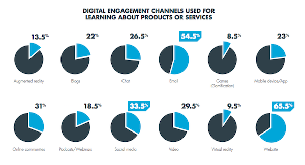 Il Web d’altro canto è complesso, esiste un punto di partenza dal quale l’utente innesca la navigazione, ma di solito si avvale di differenti canali per confrontare, paragonare e effettuare una scelta oculata prima di un acquisto. La ricerca ci conferma che, tra le diverse tipologie di canale, quelle che primeggiano sono il Sito Web, seguito dai Social Media, per giungere alle Email. Tre strumenti che, possiamo riconoscerlo, sono ampiamente coinvolti in un processo di vendita come utenti e che le aziende dovrebbero sfruttare a fondo.