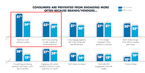Dalla ricerca, non a caso, emerge che i motivi principali per i quali un utente decide di non interagire più con un brand è la presenza, o meglio l’assenza, di contenuti che incontrino le aspettative dell’utente.