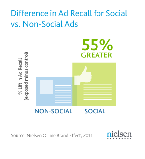 A tal proposito, in una precedente ricerca, Nielsen aveva evidenziato come l’utilizzo della pubblicità all’interno dei social network ha un beneficio fondamentale: cattura l’attenzione e ha un carattere di persistenza nella mente dell’utente che la guarda. In particolare questa ricerca è riuscita ad analizzare le effettive conversioni, che sono principalmente legate all’acquisto on-store dei prodotti sponsorizzati, dimostrando che non sempre il CTR degli annunci è una metrica efficace per misurare le conversioni negli acquisti offline ma che esiste comunque una correlazione tra sponsorizzazioni online e vendite offline derivata dal fatto che, gli Ads, possono migliorare l’impatto del brand sui consumatori.