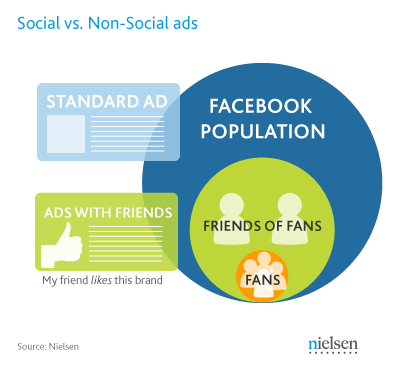 Sempre da Nielsen, ci giunge un’analisi condotta su 79 campagne promozionali su Facebook per un periodo di sei mesi. La ricerca ha permesso di capire come gli annunci e i messaggi social sono riusciti a colpire il modo maggiore il pubblico del canale, dimostrandone un’effettiva efficacia rispetto agli annunci non-social. In particolare lo studio ha considerato due tipologie di annunci: