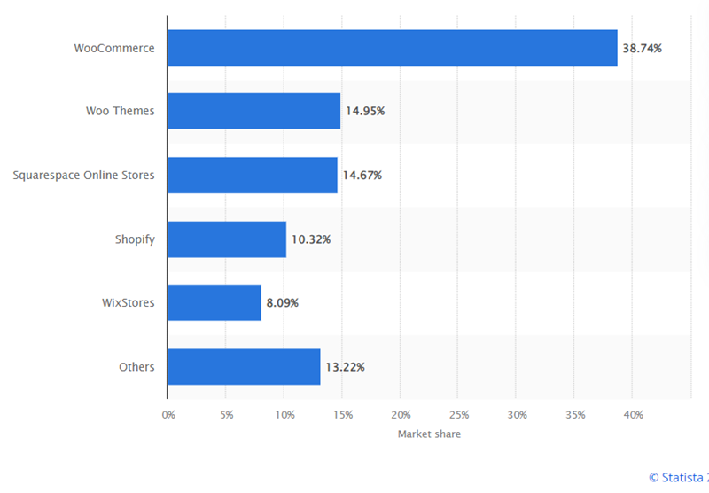 Curiosità: da una ricerca effettuata nel 2023 da Statista, è emerso come Woocommerce abbia la quota più alta di mercato, con ben il 38% di utilizzo.