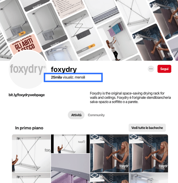 Il canale di Foxydry è stato utilizzato in modo qualitativamente utile per il follower in quanto, oltre a presentare il prodotto stesso, con foto e video, ha pensato di realizzare delle board dedicate ad argomenti che acchiappano follower pubblicando ispirazioni su tematiche che ruotano intorno all’azienda come “Il bucato nel mondo”, suggerendo “Idee per la casa”, passando da “Consigli & Trucchi” e imbastendo il tutto anche con delle citazioni.