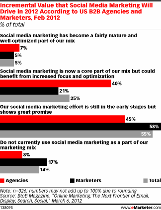 A prescindere, comunque, dagli obiettivi di lead, vendere il strategie di marketing attraverso il B2B non è stato semplice, ma bisogna segnalare un cambio di tendenza nell’ultimo periodo, in quanto le strategie social stanno fruttando alla grande! Il 55% degli intervistati che operano nel settore del B2B, dichiara che attraverso il marketing social hanno prodotto elevati profitti che, in alcuni casi, toccano percentuali di incremento anche del 400% (come nel caso IBM) in un solo trimestre di vendita. Questo dato non può che far intuire che, si è individuato il modo ottimale per promuovere il B2B attraverso i social ma anche che, la consapevolezza di efficacia del canale da parte dei marketer d’azienda, li sta spingendo ad attuare sforzi, non solo nella comprensione e ottimizzazione, ma anche nel miglioramento di gestione dei profili sociali.