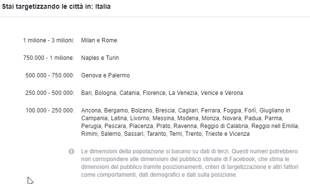 Il targeting geografico su Facebook ci consente semplicemente di comunicare alla piattaforma le zone geografiche rilevanti in cui vorremmo mostrare i nostri annunci.