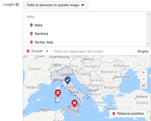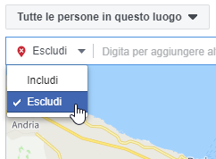 Per escludere determinate zone geografiche in cui non vuoi compaiano gli annunci, c’è l’opzione relativa di esclusione.