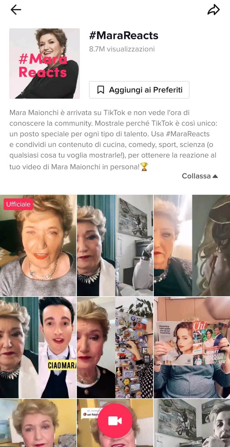 Per ribadire, le challenge più diffuse e le sfide sponsorizzate si trovano facilmente nella sezione Scopri. Esse sono sempre associate a un hashtag e, talvolta, a un brano musicale e rappresentano un invito rivolto alla community a lanciare un messaggio, esprimendosi in modo creativo, in particolar modo attraverso il ballo e il canto. Per avere un’idea della portata di diffusione delle challenge, basta constatare che gli hashtag #curvyEbello e #LeCoseCheNonSai attualmente registrano 7,4 milioni e 37,2 milioni di occorrenze.